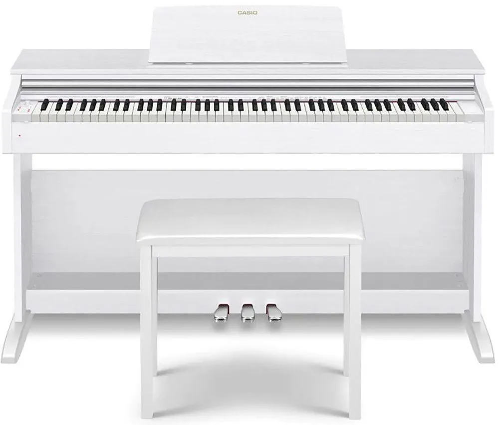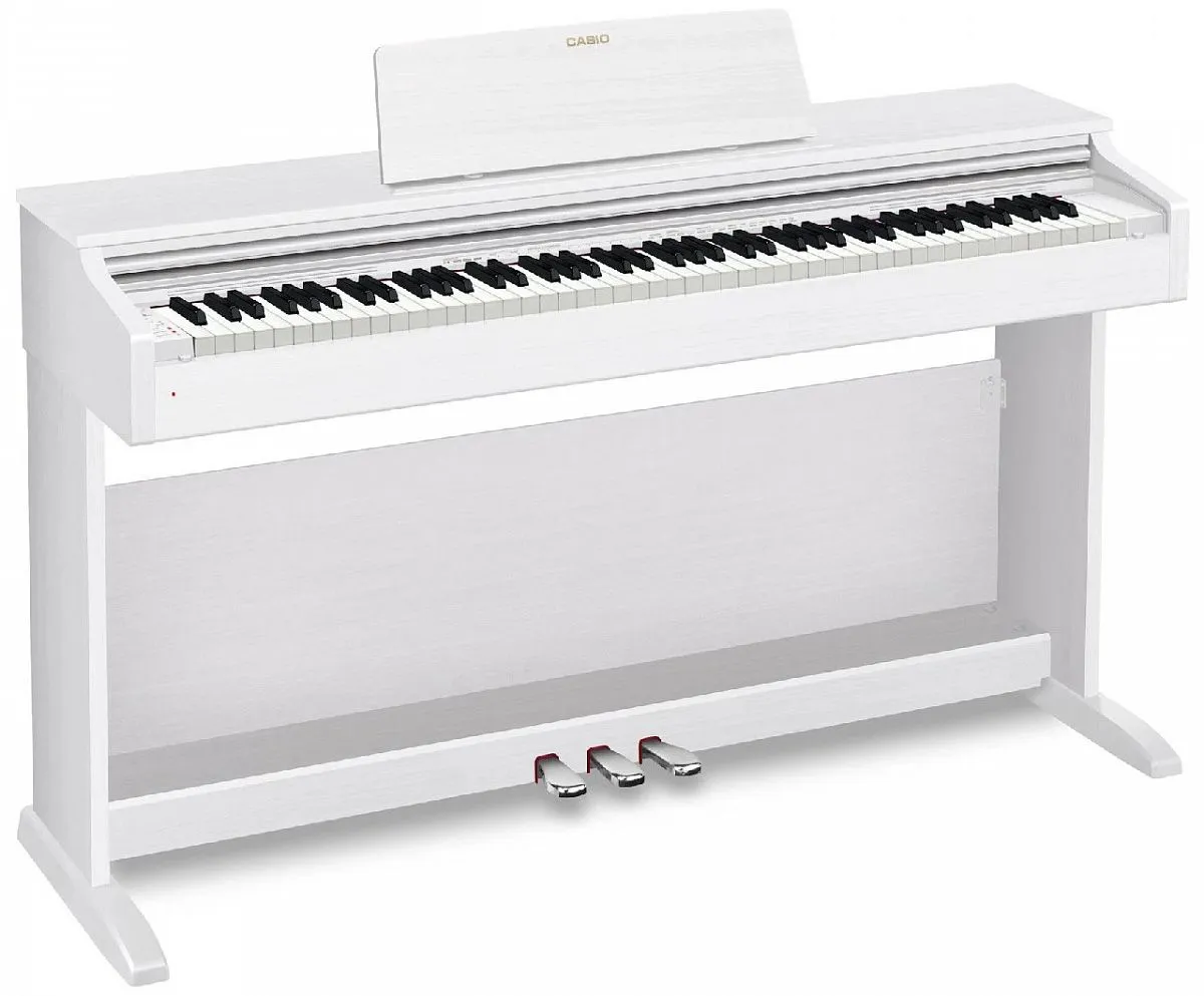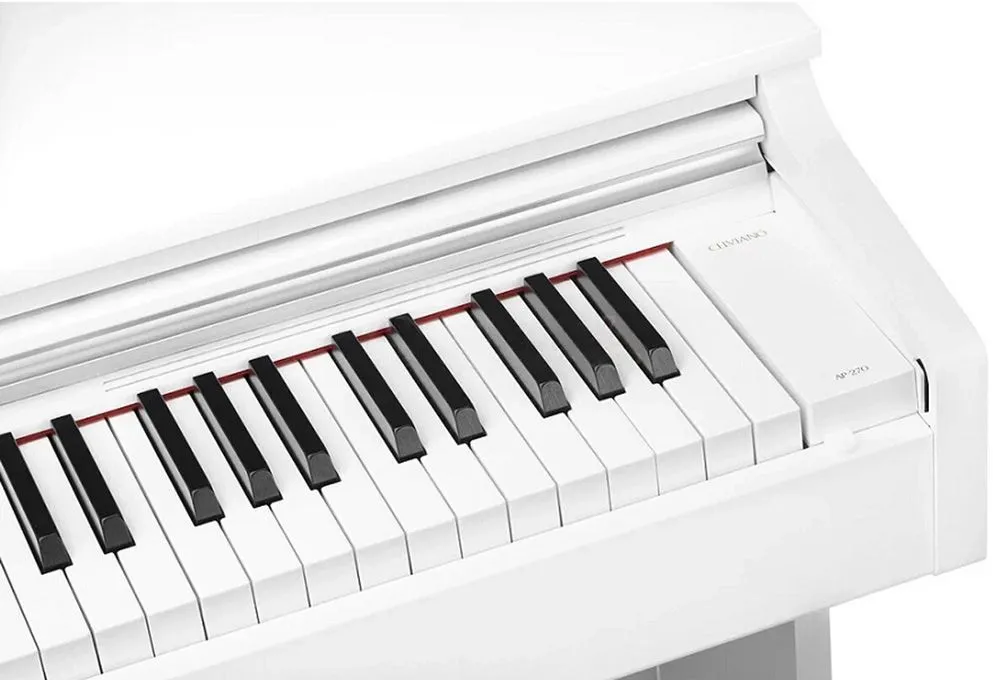 Casio Celviano AP-270 – цифровое пианино кабинетного типа, оснащённое крышкой клавиатуры и тремя педалями.