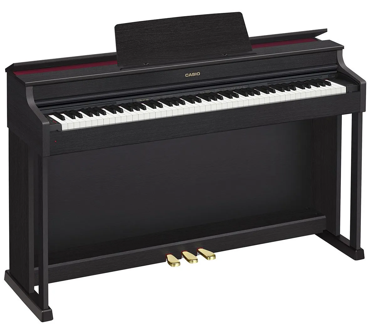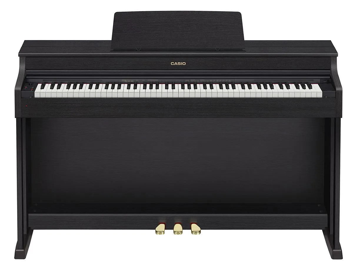 Casio Celviano AP-470BK - это цифровое пианино с полноразмерной клавиатурой (88 клавиш), аутентичным звучанием и классическим дизайном. Клавиатура пианино трехсенсорная, модель Scaled Hammer Action Keyboard 2-го поколения. Пианино приятно порадует уникальными тембрами классического рояля. Производитель особенно выделяет два тембра, один из которых прекрасно подойдет для исполнения классики, второй - более яркий, станет хорошим решением для джаза, поп- и рок-музыки. Всего пианино оснащено 22 тембрами. В конструкции CASIO CELVIANO AP-470 реализована технология резонанса струн, которая дает возможность получить по-настоящему живое звучание акустического инструмента.