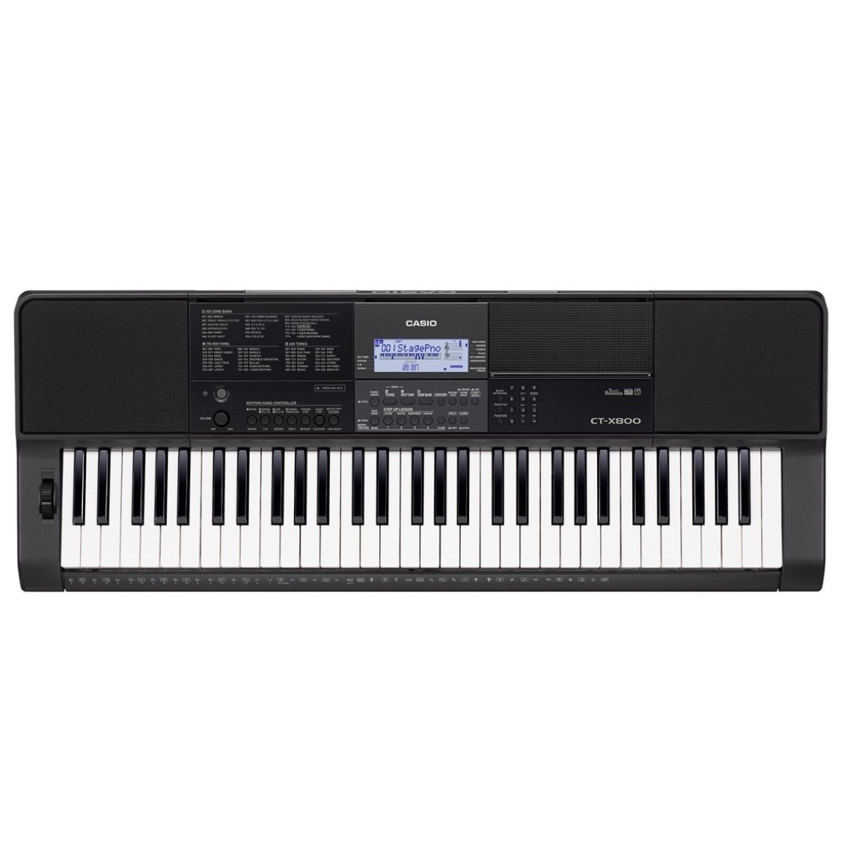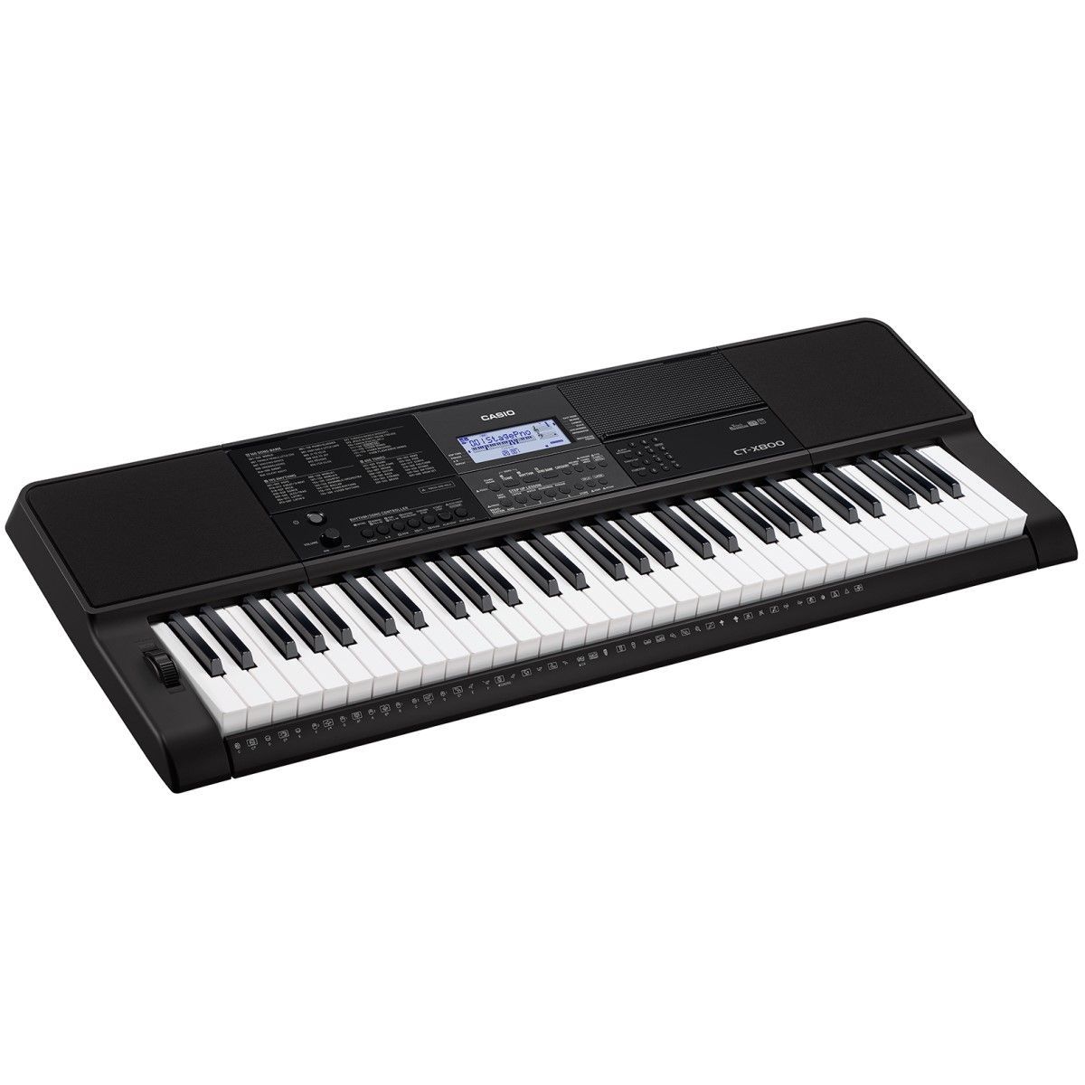 Casio CT-X800 - компактный синтезатор современного дизайна с расширенными и улучшенными функциональными возможностями от знаменитого японского производителя, который подойдёт как начинающим, так и опытным музыкантам. Модель оснащена 61-клавишной клавиатурой с тремя уровнями чувствительности. Отличительная черта этой модели – новейший звуковой движок AiX с 600 встроенными тембрами, который позволяет реалистично воспроизвести звучание акустических инструментов, в том числе фортепиано, струнных и духовых, барабанов. 48-нотная полифония обеспечивает богатое, насыщенное звучание. Доступен банк из 160 встроенных композиций плюс 10 пользовательских. Имеется автоаккомпанемент: 195 встроенных ритмов и 10 пользовательскими. Синтезатор оснащён собственной встроенной акустической системой (два 12-сантиметровых динамика мощностью по 2,5 Вт), можно подключиться к внешней акустической системе или прослушивать свою игру через наушники. Синтезатор отличается небольшим размером и весом (всего 4,4 кг), благодаря чему его удобно брать с собой, чтобы играть в любом месте, в любое время. Возможность полностью автономной работы от батареек позволяет использовать CASIO CT-X800 даже там, где нет доступа к электросети. При использовании 6 батарей АА 1,5 В возможно непрерывное использование в течение примерно 3 часов. Можно также использовать адаптер переменного тока AD-E95100L.