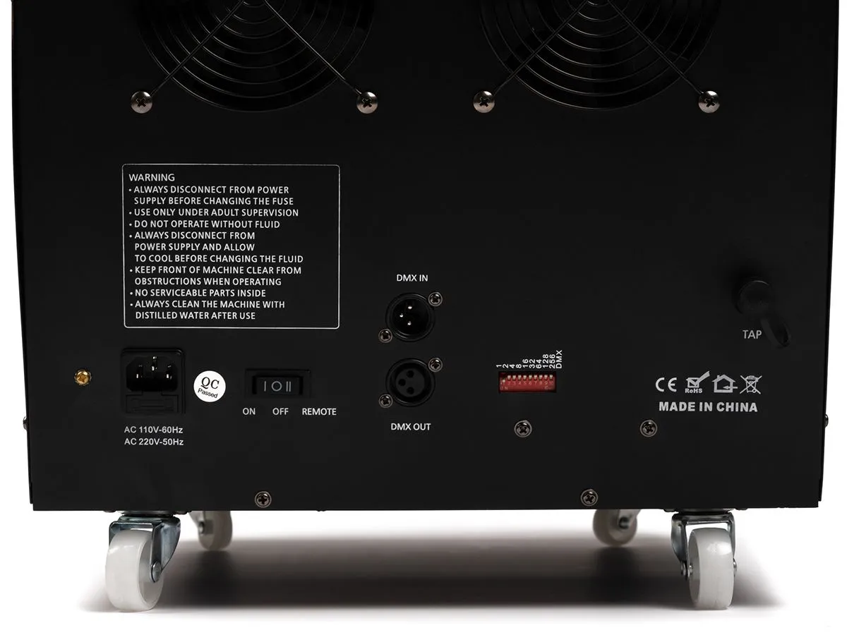 Генератор мыльных пузырей с управлением по DMX или с пульта д/у. 1 положение (верхнее) - управление по DMX. 2 положение (среднее) - прибор выключен. 3 положение (нижнее) - управление с помощью пульта д/у. Напряжение: 230В 50Гц Количество колес: 2 Мощность: 100W Количество палочек на колесе: 10 RPM: 60 Кран быстрого слива сзади Управление по DMX512 DMX512: 1 канал Емкость для жидкости: 2,5 л Вес, нетто: 10,5 кг Размеры установки: 380/450/470 (мм)
