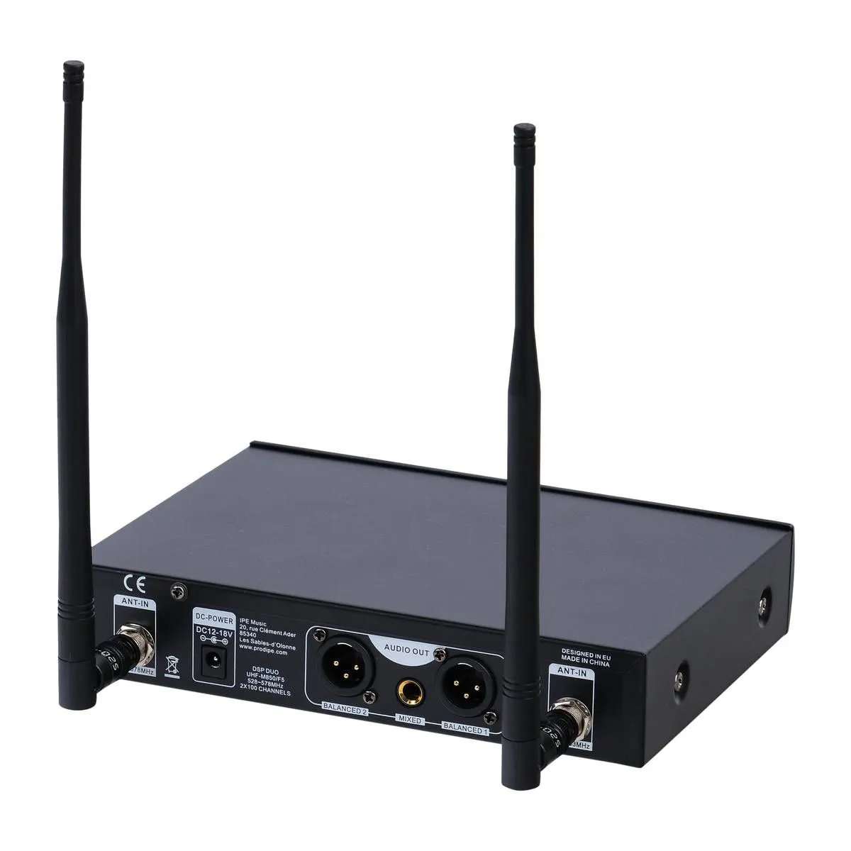 Prodipe ставит себя на службу качеству и четкости вашего беспроводного звучания. Система M850 DSP Duo состоит из приемника в металлическом корпусе с антенной BNC и двумя балансными выходами XLR и небалансным выходом Jack и двух ручных микрофонов УВЧ с легкодоступным экраном отображения каналов и кнопкой отключения звука.