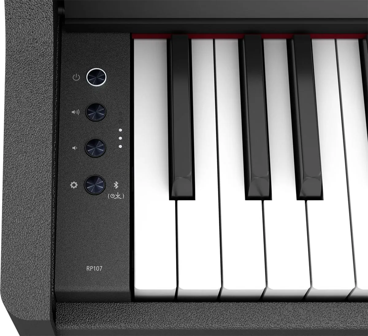 Если вы ищите первое пианино для своей семьи, и бюджет действительно важен, аутентичное звучание и удобство игры должно быть в приоритете. Бюджетное цифровое пианино RP107 полностью отвечает этим требованиям, всё благодаря продвинутому звуковому движку и механике клавиатуры, которая устанавливается и на все старшие модели. Внешность этого пианино тоже очень привлекательна: дизайн включает в себя классические мотивы, оставаясь при этом универсальным и компактным. Кроме того, встроенная функция Bluetooth позволит подключать инструмент к любым мобильным устройствам для использования приложения Roland Piano App.