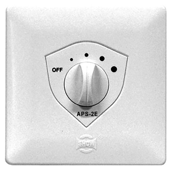 SHOW APS-2E является настенным аттенюатором от компании Pacific Electronics, предназначен для фиксированной регулировки громкости (4 позиции и выкл) в компонентной среде различных акустических систем или мультирума. Рассчитан на мощность проводимого сигнала не более 60 Вт. Корпус аттенюатора SHOW APS-2E предназначен для скрытой установки, что позволяет ему не выделяться на фоне общего интерьера помещения. Габариты корпуса составляют 87x87x53 мм.